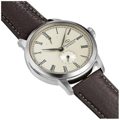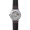 Dit Orient horloge heeft een kast gemaakt van Staal zilver met een diameter van 39 mm en is voorzien van een leer band. In de kast bevindt zich een Epson kwaliteitsuurwerk en is afgewerkt met Mineraalglas.