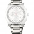 Dit Orient horlogebandje is gemaakt van roestvrij staal en wordt aan het horloge bevestigd door middel van bandpennen. De band heeft een breedte van 22 mm en wordt gesloten door middel van een vouwsluiting met drukknoppen. De band heeft geen rechte aanzet wat betekent dat deze band alleen geschikt is voor de horloges die hieronder worden vermeld.