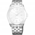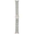 Dit Orient horlogebandje is gemaakt van roestvrij staal en wordt aan het horloge bevestigd door middel van bandpennen. De band heeft een breedte van 20 mm en wordt gesloten door middel van een vouwsluiting met drukknoppen. De band heeft geen rechte aanzet wat betekent dat deze band alleen geschikt is voor de horloges die hieronder worden vermeld.