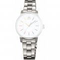 Dit Orient horlogebandje is gemaakt van roestvrij staal en wordt aan het horloge bevestigd door middel van bandpennen. De band heeft een breedte van 14 mm en wordt gesloten door middel van een vouwsluiting met drukknoppen. De band heeft geen rechte aanzet wat betekent dat deze band alleen geschikt is voor de horloges die hieronder worden vermeld.