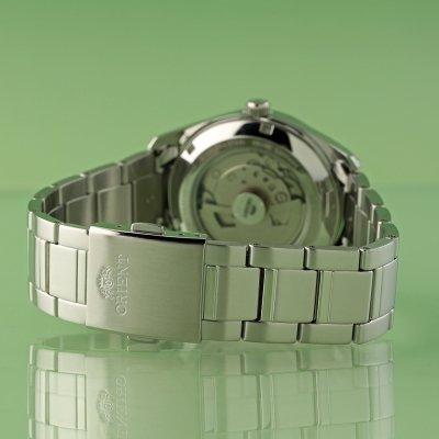 Dit Orient horloge heeft een kast gemaakt van Staal zilver met een diameter van 38.5 mm en is voorzien van een Staal zilver band. In de kast bevindt zich een Orient kwaliteitsuurwerk en is afgewerkt met Saffierglas.