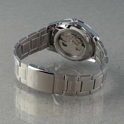 Dit Orient horloge heeft een kast gemaakt van Staal zilver met een diameter van 38.5 mm en is voorzien van een Staal zilver band. In de kast bevindt zich een Orient kwaliteitsuurwerk en is afgewerkt met Saffierglas.