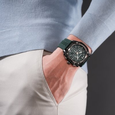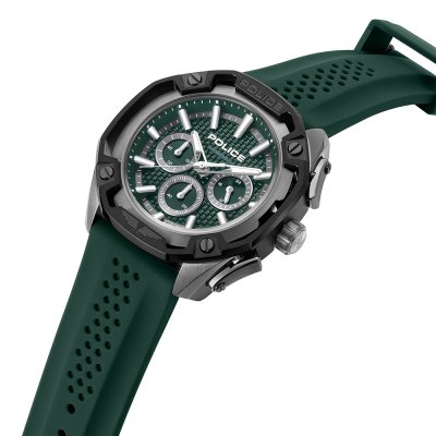 Dit Police horloge heeft een kast gemaakt van Staal zilver met een diameter van 46 mm en is voorzien van een Rubber band. In de kast bevindt zich een Seiko Instruments Inc. kwaliteitsuurwerk en is afgewerkt met Mineraalglas.