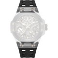 Dit Police horlogebandje is gemaakt van siliconen en wordt aan het horloge bevestigd door middel van schroeven. De band heeft een breedte van 26 mm en wordt gesloten door middel van een gesp. De band heeft geen rechte aanzet wat betekent dat deze band alleen geschikt is voor de horloges die hieronder worden vermeld.