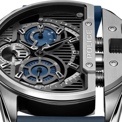 Dit Police horloge heeft een kast gemaakt van Staal zilver met een diameter van 48 mm en is voorzien van een Rubber band. In de kast bevindt zich een Seiko Instruments Inc. kwaliteitsuurwerk en is afgewerkt met Mineraalglas.