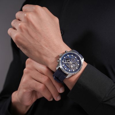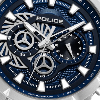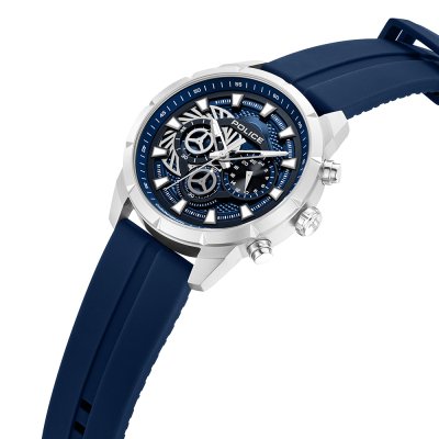Dit Police horloge heeft een kast gemaakt van Staal zilver met een diameter van 45 mm en is voorzien van een Rubber band. In de kast bevindt zich een Seiko Instruments Inc. kwaliteitsuurwerk en is afgewerkt met Mineraalglas.