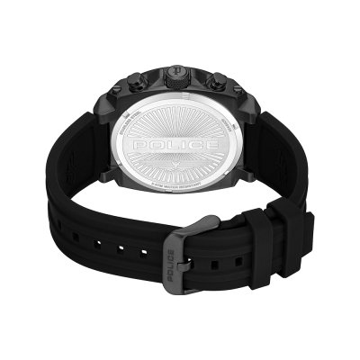 Dit Police horloge heeft een kast gemaakt van Staal zilver met een diameter van 45 mm en is voorzien van een Rubber band. In de kast bevindt zich een Seiko Instruments Inc. kwaliteitsuurwerk en is afgewerkt met Mineraalglas.