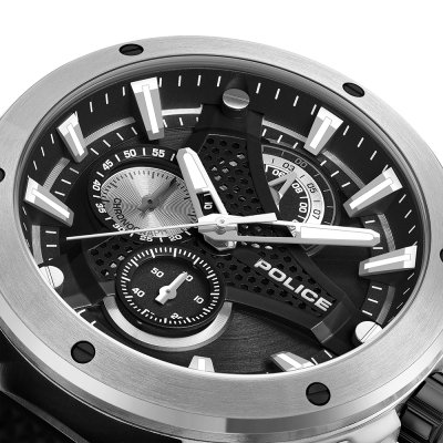 Dit Police horloge heeft een kast gemaakt van Staal zilver met een diameter van 45 mm en is voorzien van een Rubber band. In de kast bevindt zich een Seiko Instruments Inc. kwaliteitsuurwerk en is afgewerkt met Mineraalglas.