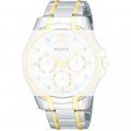 Dit Pulsar horlogebandje is gemaakt van roestvrij staal en wordt aan het horloge bevestigd door middel van bandpennen. De band heeft een breedte van 19 mm en wordt gesloten door middel van een vouwsluiting met drukknoppen. De band heeft geen rechte aanzet wat betekent dat deze band alleen geschikt is voor de horloges die hieronder worden vermeld.