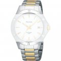 Dit Pulsar horlogebandje is gemaakt van roestvrij staal en wordt aan het horloge bevestigd door middel van bandpennen. De band heeft een breedte van 19 mm en wordt gesloten door middel van een vouwsluiting met drukknoppen. De band heeft geen rechte aanzet wat betekent dat deze band alleen geschikt is voor de horloges die hieronder worden vermeld.