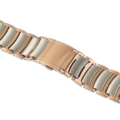 Dit Rado horlogebandje is gemaakt van roestvrij staal en wordt aan het horloge bevestigd door middel van pen en buis. De band heeft een breedte van 22 mm en wordt gesloten door middel van een vouwsluiting met drukknoppen. De band heeft geen rechte aanzet wat betekent dat deze band alleen geschikt is voor de horloges die hieronder worden vermeld.