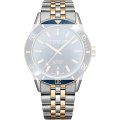 Dit Raymond Weil horlogebandje is gemaakt van metaal en wordt aan het horloge bevestigd door middel van bandpennen. De band heeft een breedte van 22 mm en wordt gesloten door middel van een vouwsluiting met drukknoppen. De band heeft geen rechte aanzet wat betekent dat deze band alleen geschikt is voor de horloges die hieronder worden vermeld.