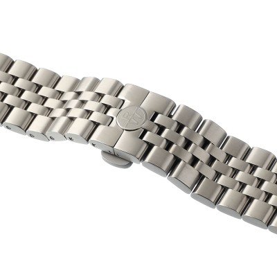 Dit Raymond Weil horlogebandje is gemaakt van titanium en wordt aan het horloge bevestigd door middel van bandpennen. De band heeft een breedte van 22 mm en wordt gesloten door middel van een vlindersluiting met drukknoppen. De band heeft geen rechte aanzet wat betekent dat deze band alleen geschikt is voor de horloges die hieronder worden vermeld.