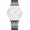 Dit Raymond Weil horlogebandje is gemaakt van roestvrij staal en wordt aan het horloge bevestigd door middel van bandpennen. De band heeft een breedte van 21 mm en wordt gesloten door middel van een vlindersluiting met drukknoppen. De band heeft geen rechte aanzet wat betekent dat deze band alleen geschikt is voor de horloges die hieronder worden vermeld.