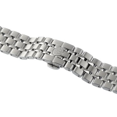 Dit Raymond Weil horlogebandje is gemaakt van roestvrij staal en wordt aan het horloge bevestigd door middel van bandpennen. De band heeft een breedte van 20 mm en wordt gesloten door middel van een vlindersluiting met drukknoppen. De band heeft geen rechte aanzet wat betekent dat deze band alleen geschikt is voor de horloges die hieronder worden vermeld.