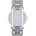 Dit Raymond Weil horlogebandje is gemaakt van metaal en wordt aan het horloge bevestigd door middel van bandpennen. De band heeft een breedte van 19 mm en wordt gesloten door middel van een vlindersluiting met drukknoppen. De band heeft geen rechte aanzet wat betekent dat deze band alleen geschikt is voor de horloges die hieronder worden vermeld.
