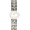 Dit Raymond Weil horlogebandje is gemaakt van metaal en wordt aan het horloge bevestigd door middel van stalen pennen. De band heeft een breedte van 12 mm en wordt gesloten door middel van een vlindersluiting met drukknoppen. De band heeft geen rechte aanzet wat betekent dat deze band alleen geschikt is voor de horloges die hieronder worden vermeld.