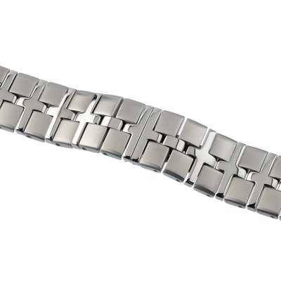 Dit Raymond Weil horlogebandje is gemaakt van roestvrij staal en wordt aan het horloge bevestigd door middel van stalen pennen. De band heeft een breedte van 18 mm en wordt gesloten door middel van een onzichtbare vlindersluiting. De band heeft geen rechte aanzet wat betekent dat deze band alleen geschikt is voor de horloges die hieronder worden vermeld.