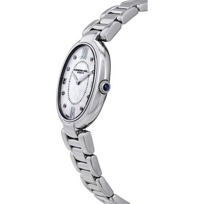 Dit prachtige Raymond Weil Shine dameshorloge is versierd met acht echte diamanten. Het wordt geleverd met een gemakkelijk verwisselbare roestvrijstalen en een zwarte leren band, zodat uw horloge past bij uw outfit of uw humeur. Dit verfijnde dameshorloge heeft een ovale vorm die de elegantie versterkt met een klassieke ondertoon.
