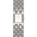 Dit Raymond Weil horlogebandje is gemaakt van metaal en wordt aan het horloge bevestigd door middel van bandpennen. De band heeft een breedte van 21 mm en wordt gesloten door middel van een onzichtbare vlindersluiting. De band heeft geen rechte aanzet wat betekent dat deze band alleen geschikt is voor de horloges die hieronder worden vermeld.