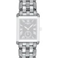 Dit Raymond Weil horlogebandje is gemaakt van metaal en wordt aan het horloge bevestigd door middel van bandpennen. De band heeft een breedte van 16 mm en wordt gesloten door middel van een vouwsluiting met drukknoppen. De band heeft geen rechte aanzet wat betekent dat deze band alleen geschikt is voor de horloges die hieronder worden vermeld.