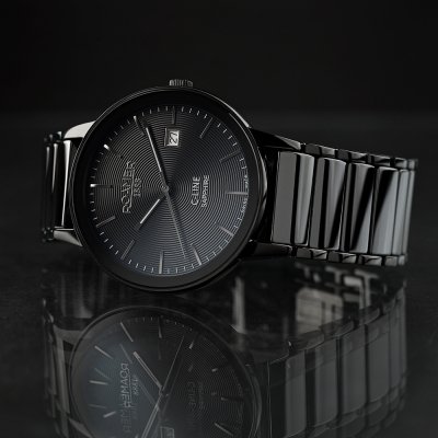 Dit Roamer horloge heeft een kast gemaakt van Staal zilver met een diameter van 41 mm en is voorzien van een Roestvrij staal en keramiek band. In de kast bevindt zich een Ronda kwaliteitsuurwerk en is afgewerkt met Saffierglas.