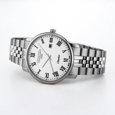 Dit Roamer horloge heeft een kast gemaakt van Staal zilver met een diameter van 40 mm en is voorzien van een Staal zilver band. In de kast bevindt zich een Ronda kwaliteitsuurwerk en is afgewerkt met Saffierglas.