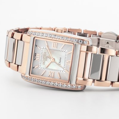 Elegant Zwitsers rechthoekig quartzhorloge met kristallen