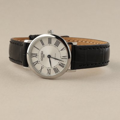Dit Roamer horloge heeft een kast gemaakt van Staal zilver met een diameter van 28 mm en is voorzien van een leer band. In de kast bevindt zich een Ronda kwaliteitsuurwerk en is afgewerkt met Saffierglas.