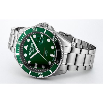 Dit Roamer horloge heeft een kast gemaakt van Staal zilver met een diameter van 43 mm en is voorzien van een Staal zilver band. In de kast bevindt zich een Ronda kwaliteitsuurwerk en is afgewerkt met Saffierglas.