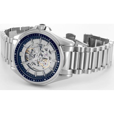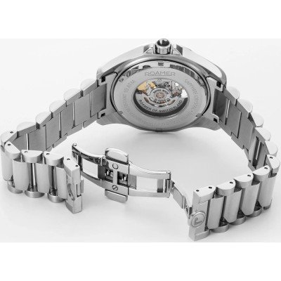 Dit Roamer horloge heeft een kast gemaakt van Staal zilver met een diameter van 44 mm en is voorzien van een Staal zilver band. In de kast bevindt zich een Soprod kwaliteitsuurwerk en is afgewerkt met Saffierglas.