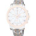 Dit Seiko horlogebandje is gemaakt van roestvrij staal en wordt aan het horloge bevestigd door middel van bandpennen. De band heeft een breedte van 17 mm en wordt gesloten door middel van een vouwsluiting met drukknoppen. De band heeft geen rechte aanzet wat betekent dat deze band alleen geschikt is voor de horloges die hieronder worden vermeld.