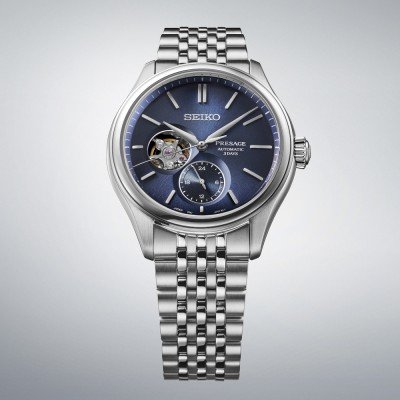 De horloges in de Seiko Presage Classic Open heart-serie hebben wijzerplaten met een rijke textuur en gebolde vorm, geΓ―nspireerd op het zachte en soepele gevoel van natuurlijk textiel waarvan het gebruik is verweven met de Japanse cultuur. De toppen van de indexen buigen om zich aan te passen aan de ronde vorm van de wijzerplaat en de minuten- en secondewijzers buigen zachtjes in de richting van de markeringen. Een nieuw ontwikkelde band geΓ―nspireerd op de jaren 1970 zorgt voor een comfortabel gevoel om de pols. De nieuwste toevoeging aan de populaire horlogeserie is dit horloge met de naam 'Ai-iro' vanwege de indigo wijzerplaat. Tijdens het Meiji-tijdperk (1868 tot 1912), toen Japan zich openstelde voor het Westen, bedekten steden zich met de kleur, wat ertoe leidde dat buitenlanders die het land voor het eerst bezochten het 'Japan Blue' gingen noemen. Het kleurenpalet van de serie omvat verder ook shiro-iro, de kleur van ongebleekte natuurlijke stof, die de inspiratie vormt voor twee wijzerplaten in de collectie; sensai-cha, een ingetogen groenachtig bruin dat in de mode was tijdens de Edo-periode; arai-gaki, een gewassen en gebleekte kaki kleur; en sumi-iro, een grijsachtig zwart dat oorspronkelijk werd gebruikt in kleding die door monniken werd gedragen.