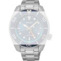 Dit Seiko horlogebandje is gemaakt van roestvrij staal en wordt aan het horloge bevestigd door middel van bandpennen. De band heeft een breedte van 20 mm en wordt gesloten door middel van een vouwsluiting met drukknoppen en veiligheidsklep. De band heeft geen rechte aanzet wat betekent dat deze band alleen geschikt is voor de horloges die hieronder worden vermeld.