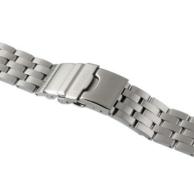 Dit Seiko horlogebandje is gemaakt van roestvrij staal en wordt aan het horloge bevestigd door middel van bandpennen. De band heeft een breedte van 20 mm en wordt gesloten door middel van een vouwsluiting met drukknoppen en veiligheidsklep. De band heeft geen rechte aanzet wat betekent dat deze band alleen geschikt is voor de horloges die hieronder worden vermeld.