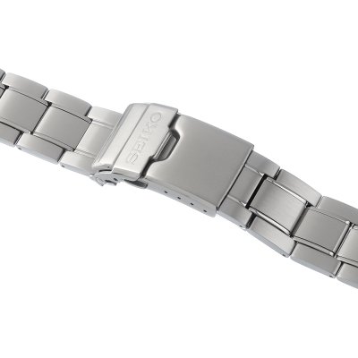 Dit Seiko horlogebandje is gemaakt van roestvrij staal en wordt aan het horloge bevestigd door middel van stalen pennen. De band heeft een breedte van 22 mm en wordt gesloten door middel van een vouwsluiting met drukknoppen en veiligheidsklep. De band heeft geen rechte aanzet wat betekent dat deze band alleen geschikt is voor de horloges die hieronder worden vermeld.