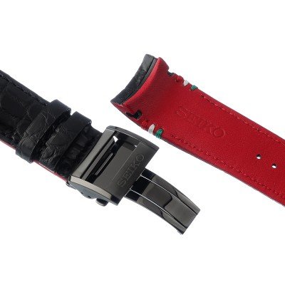 Dit Seiko horlogebandje is gemaakt van leer en wordt aan het horloge bevestigd door middel van bandpennen. De band heeft een breedte van 22 mm en wordt gesloten door middel van een gesp vouwsluiting. De band heeft geen rechte aanzet wat betekent dat deze band alleen geschikt is voor de horloges die hieronder worden vermeld.