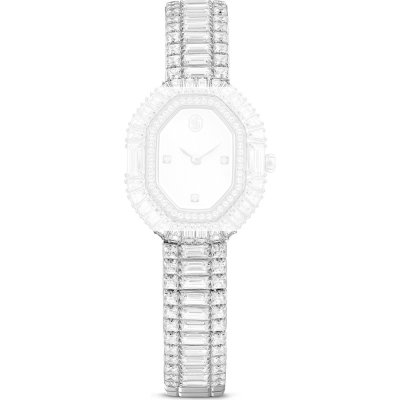 Dit Swarovski horlogebandje is gemaakt van roestvrij staal en wordt aan het horloge bevestigd door middel van stalen pennen. De band heeft een breedte van 8 mm en wordt gesloten door middel van een sieraadsluiting. De band heeft geen rechte aanzet wat betekent dat deze band alleen geschikt is voor de horloges die hieronder worden vermeld.