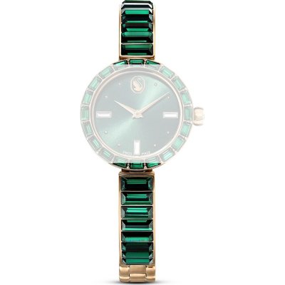 Dit Swarovski horlogebandje is gemaakt van roestvrij staal en wordt aan het horloge bevestigd door middel van stalen pennen. De band heeft een breedte van 8 mm en wordt gesloten door middel van een sieraadsluiting. De band heeft geen rechte aanzet wat betekent dat deze band alleen geschikt is voor de horloges die hieronder worden vermeld.