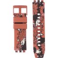 Dit Swatch horlogebandje is gemaakt van siliconen en wordt aan het horloge bevestigd door middel van stalen pennen. De band heeft een breedte van 19.7 mm en wordt gesloten door middel van een gesp. De band heeft geen rechte aanzet wat betekent dat deze band alleen geschikt is voor de horloges die hieronder worden vermeld.