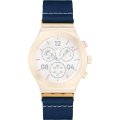 Dit Swatch horlogebandje is gemaakt van textiel en wordt aan het horloge bevestigd door middel van stalen pennen. De band heeft een breedte van 21 mm en wordt gesloten door middel van een gesp. De band heeft geen rechte aanzet wat betekent dat deze band alleen geschikt is voor de horloges die hieronder worden vermeld.