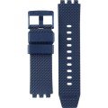 Dit Swatch horlogebandje is gemaakt van bio-plastic en wordt aan het horloge bevestigd door middel van stalen pennen. De band heeft een breedte van 19.7 mm en wordt gesloten door middel van een gesp. De band heeft geen rechte aanzet wat betekent dat deze band alleen geschikt is voor de horloges die hieronder worden vermeld.