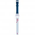 Dit Swatch horlogebandje is gemaakt van resin en wordt aan het horloge bevestigd door middel van stalen pennen. De band heeft een breedte van 12 mm en wordt gesloten door middel van een gesp. De band heeft geen rechte aanzet wat betekent dat deze band alleen geschikt is voor de horloges die hieronder worden vermeld.