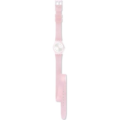Dit Swatch horlogebandje is gemaakt van siliconen en wordt aan het horloge bevestigd door middel van stalen pennen. De band heeft een breedte van 12 mm en wordt gesloten door middel van een gesp. De band heeft geen rechte aanzet wat betekent dat deze band alleen geschikt is voor de horloges die hieronder worden vermeld.