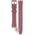 Dit Swatch horlogebandje is gemaakt van siliconen en wordt aan het horloge bevestigd door middel van stalen pennen. De band heeft een breedte van 12 mm en wordt gesloten door middel van een gesp. De band heeft geen rechte aanzet wat betekent dat deze band alleen geschikt is voor de horloges die hieronder worden vermeld.