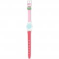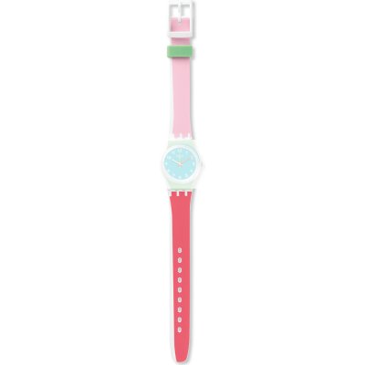 Dit Swatch horlogebandje is gemaakt van siliconen en wordt aan het horloge bevestigd door middel van stalen pennen. De band heeft een breedte van 12 mm en wordt gesloten door middel van een gesp. De band heeft geen rechte aanzet wat betekent dat deze band alleen geschikt is voor de horloges die hieronder worden vermeld.