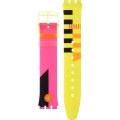 Dit Swatch horlogebandje is gemaakt van siliconen en wordt aan het horloge bevestigd door middel van stalen pennen. De band heeft een breedte van 16.5 mm en wordt gesloten door middel van een gesp. De band heeft geen rechte aanzet wat betekent dat deze band alleen geschikt is voor de horloges die hieronder worden vermeld.