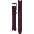 Dit Swatch horlogebandje is gemaakt van siliconen en wordt aan het horloge bevestigd door middel van stalen pennen. De band heeft een breedte van 12 mm en wordt gesloten door middel van een gesp. De band heeft geen rechte aanzet wat betekent dat deze band alleen geschikt is voor de horloges die hieronder worden vermeld.