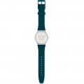 Dit Swatch horlogebandje is gemaakt van siliconen en wordt aan het horloge bevestigd door middel van stalen pennen. De band heeft een breedte van 19.7 mm en wordt gesloten door middel van een gesp. De band heeft geen rechte aanzet wat betekent dat deze band alleen geschikt is voor de horloges die hieronder worden vermeld.