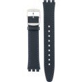 Dit Swatch horlogebandje is gemaakt van leer en wordt aan het horloge bevestigd door middel van stalen pennen. De band heeft een breedte van 15.9 mm en wordt gesloten door middel van een gesp. De band heeft geen rechte aanzet wat betekent dat deze band alleen geschikt is voor de horloges die hieronder worden vermeld.